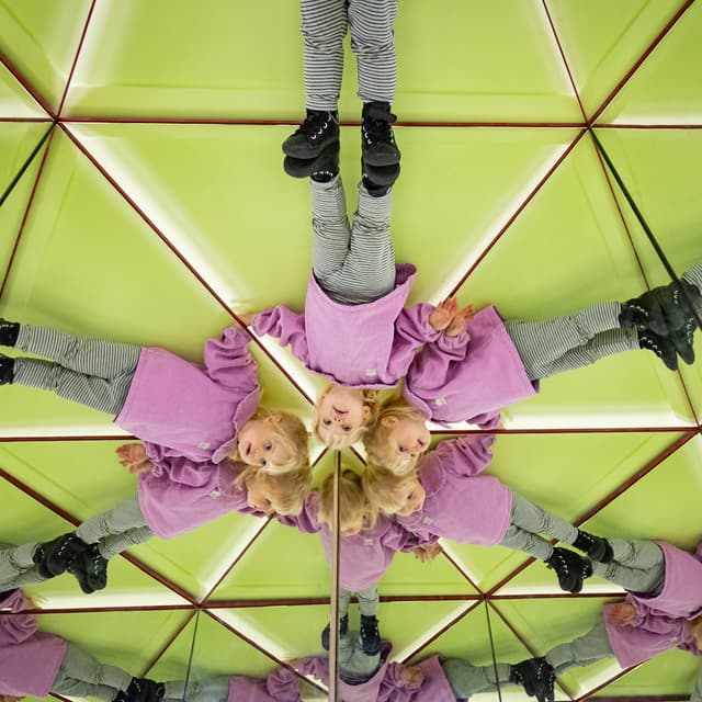 Step into the kaleidoscope to see infinite reflections of yourself.