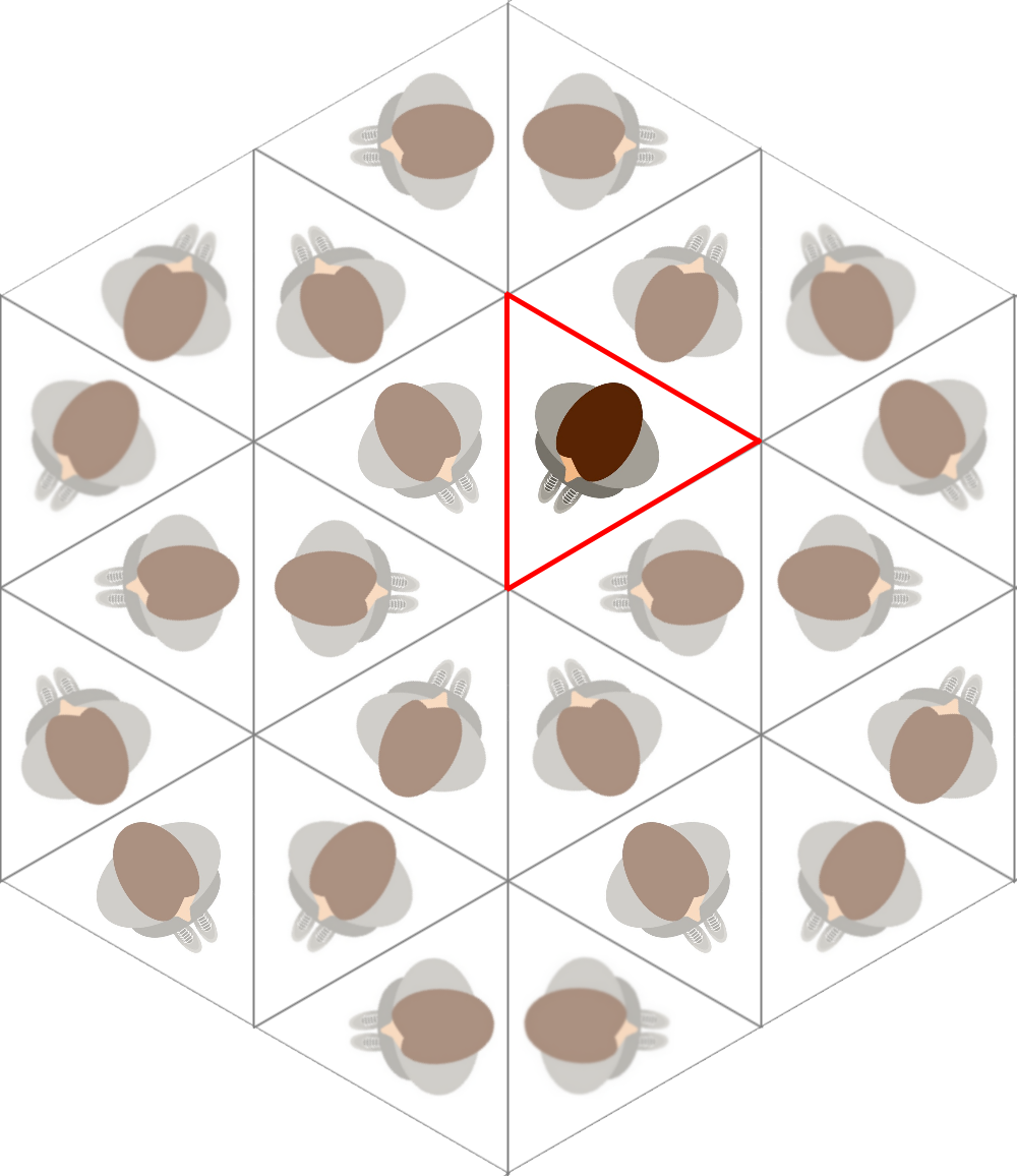 We are used to seeing ourselves reflected in a mirror, but some of your reflections here may look strange. That’s because half of the images are reflections, and half of the images are reflections-of-reflections, which create a rotation.