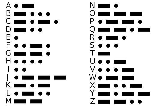 Notice that Morse code sends the most common letters using shorter sequences. So common letters, like E and T, are short while rare letters, like Q and Z, are long. This makes messages more efficient. One disadvantage to Morse code is that it needs to use spaces to separate words and letters. This makes Morse code less efficient. Today, we transmit messages using 1s and 0s. Using 1s and 0s, the most efficient code is Huffman code. Huffman code also sends the most common letters with shorter sequences, but it can do this without having to use spaces between words and letters, making it very efficient.