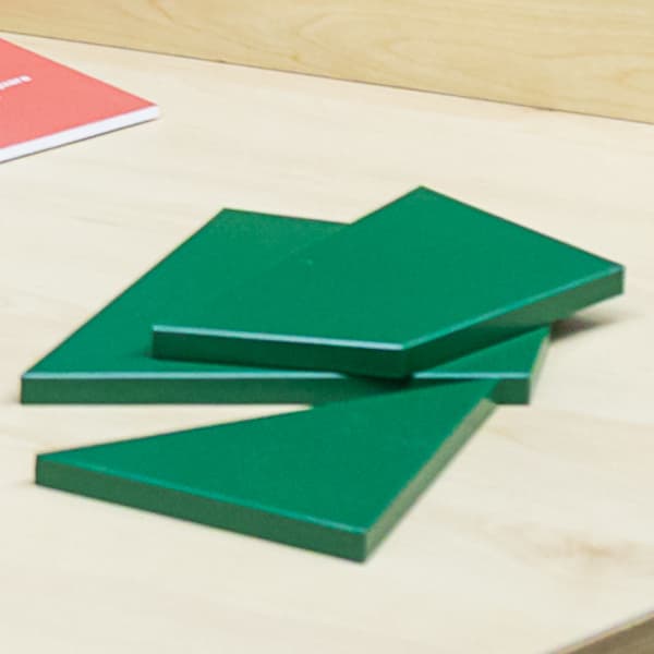 The T puzzle consists of four tiles that combine to make a capital T. Although the puzzle only has four pieces, it is very difficult to see the solution. The difficulty comes from the strange 5-sided tile. This tile contains a right-angle, and so it is very tempting to try to fill that notch with one of the other pieces. However, the right-angle is an external angle, where the horizontal and vertical lines of a T meet, and should not be filled.